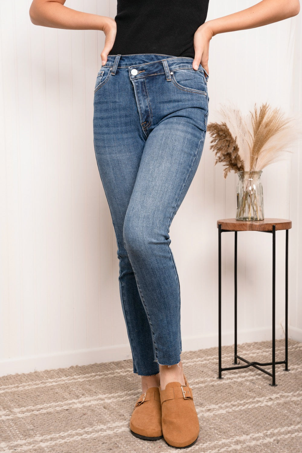 The Asymmetrical Waist Raw Hem Jeans are a must-have for this season. These jeans have an asymmetrical waist, which means they're going to flatter your figure in all the right ways. They also feature raw hems, which add a little edge to any look.