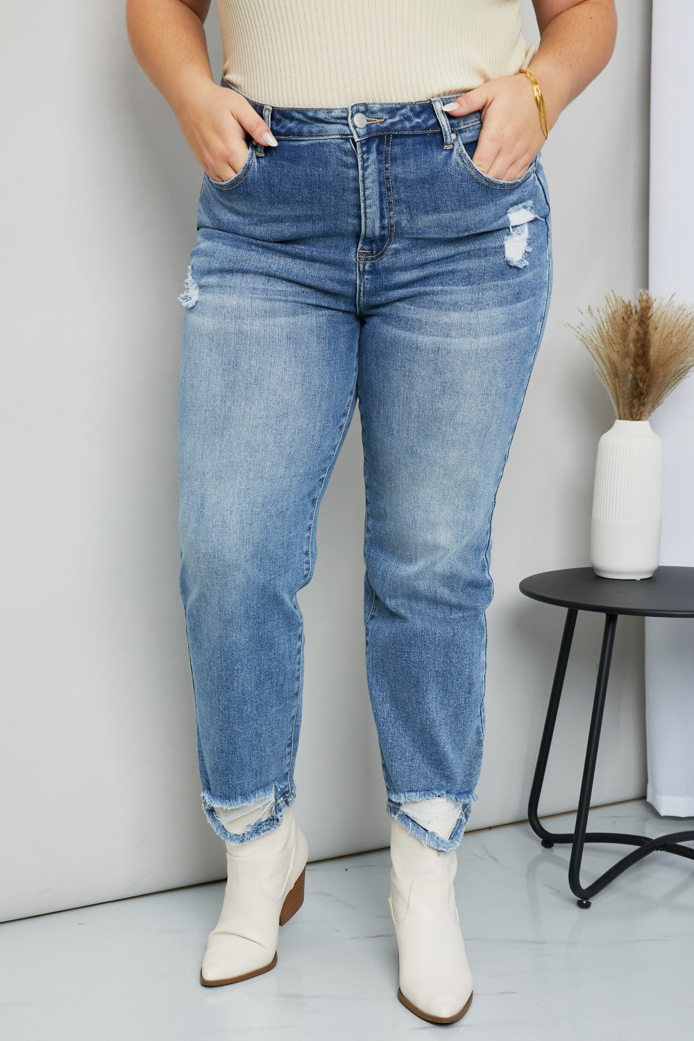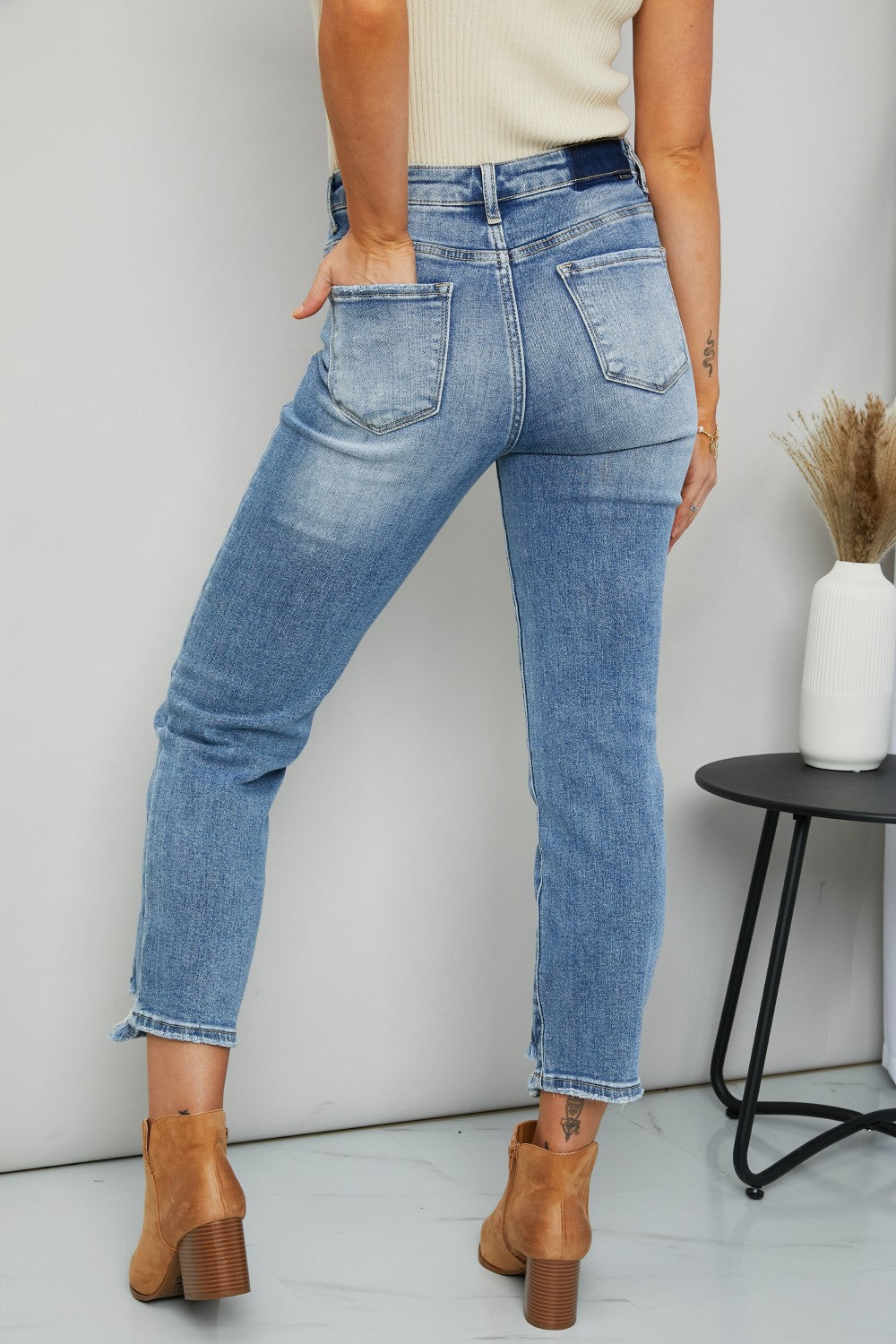 DIBS 1053 RISEN Full Size Distressed Cropped Jeans with Pockets