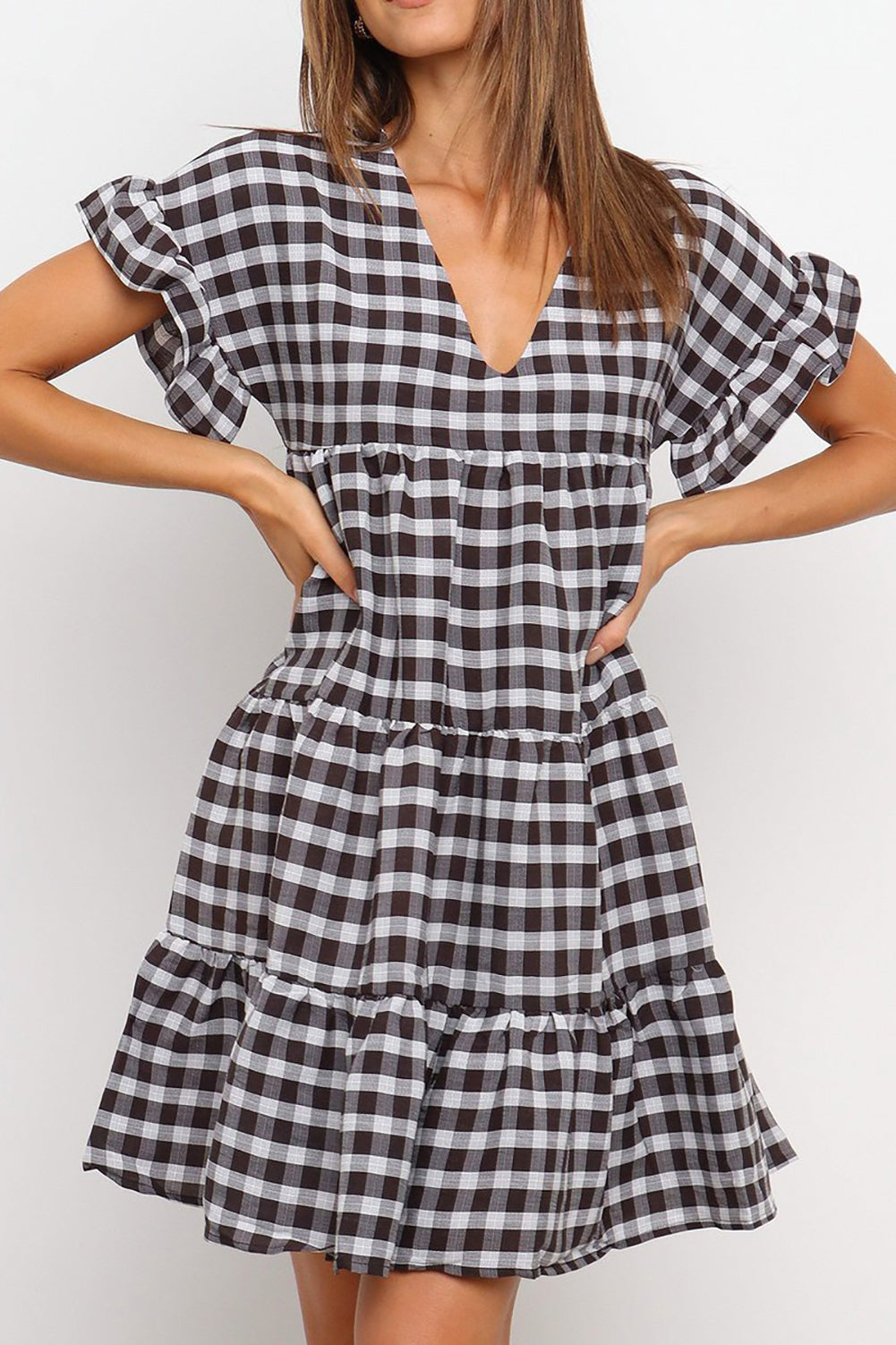 Make the most of your summer in this graceful plaid swing dress with an elegant tiered design. This airy dress keeps you cool throughout the hot days while boosting your confidence wherever you go.