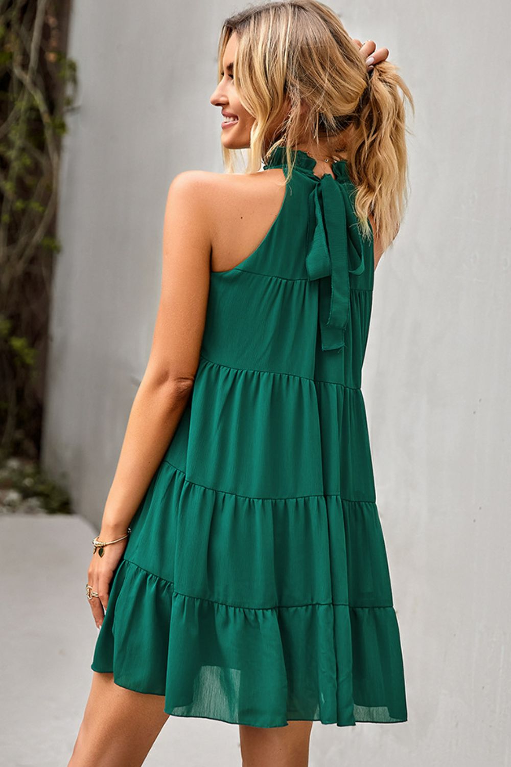 • Load image into Gallery viewer, Tie Back Ruffle Collar Tiered Dress