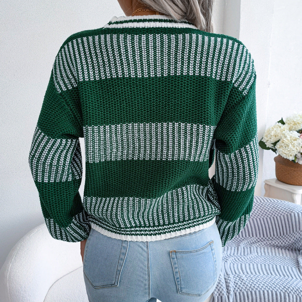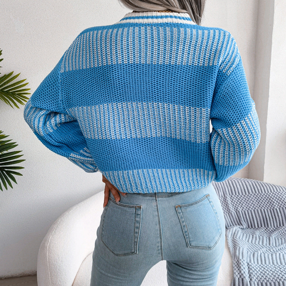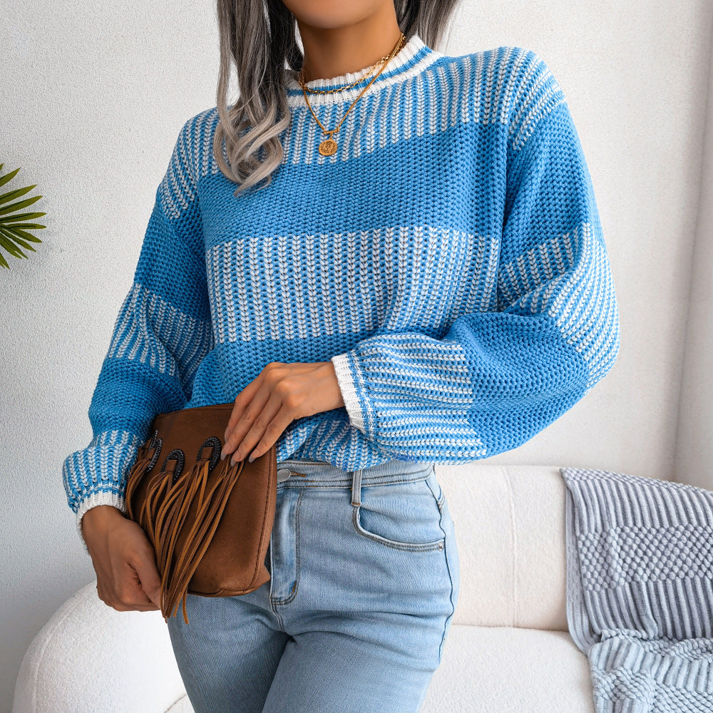 - Two-Tone Crewneck Dropped Shoulder Sweater