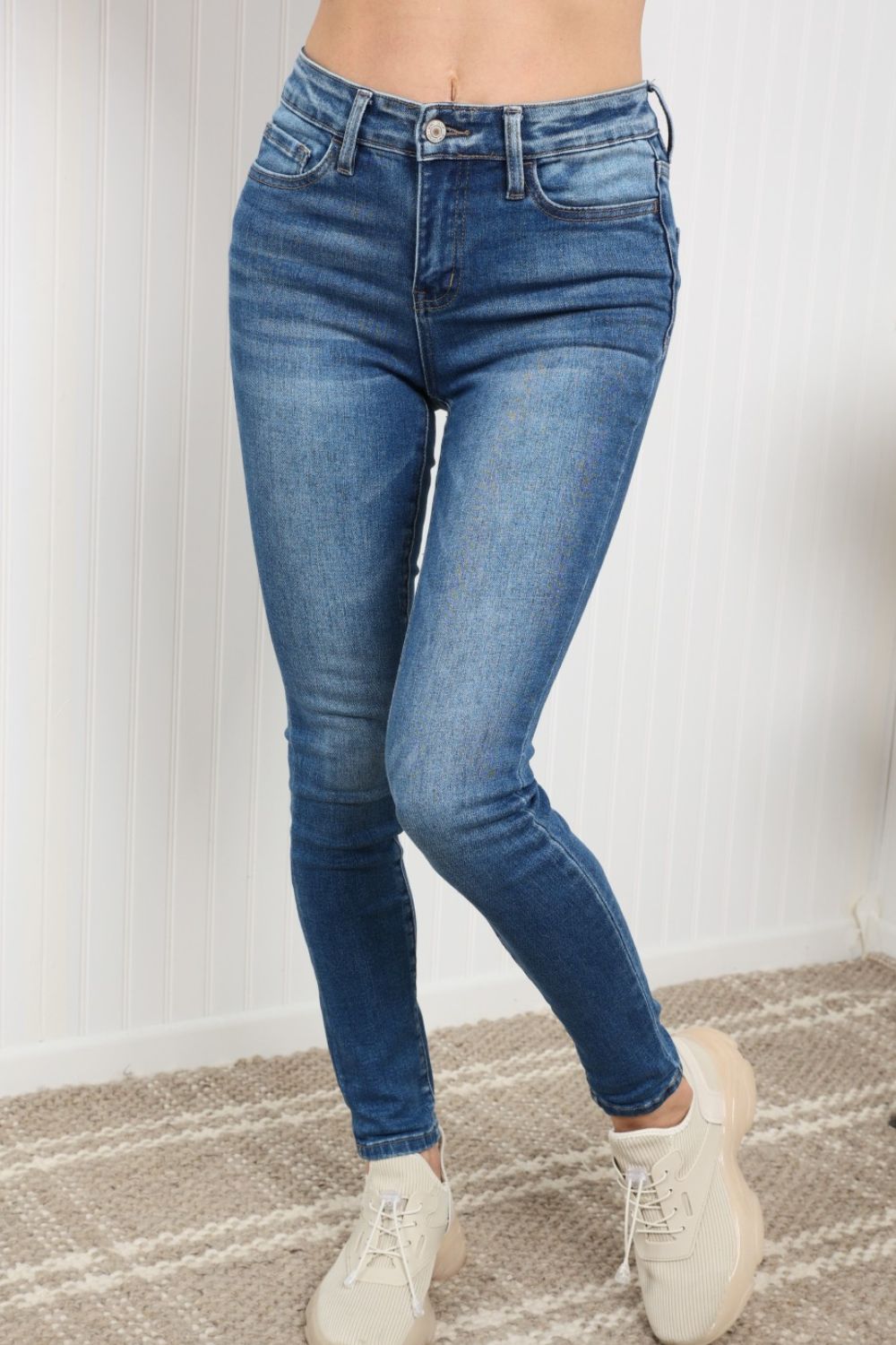 Whether you're looking to add a pop of color to your wardrobe or just want to add a bit of edge, these solid-colored high-waisted skinny jeans are a great place to start. The ankle-length cut gives them an edgy vibe while the pockets make them practical enough for everyday wear.