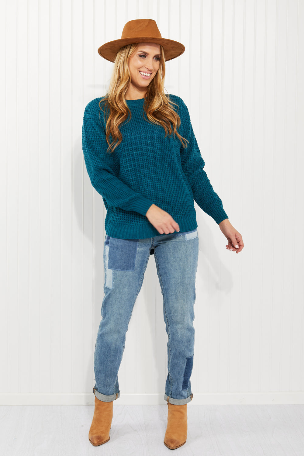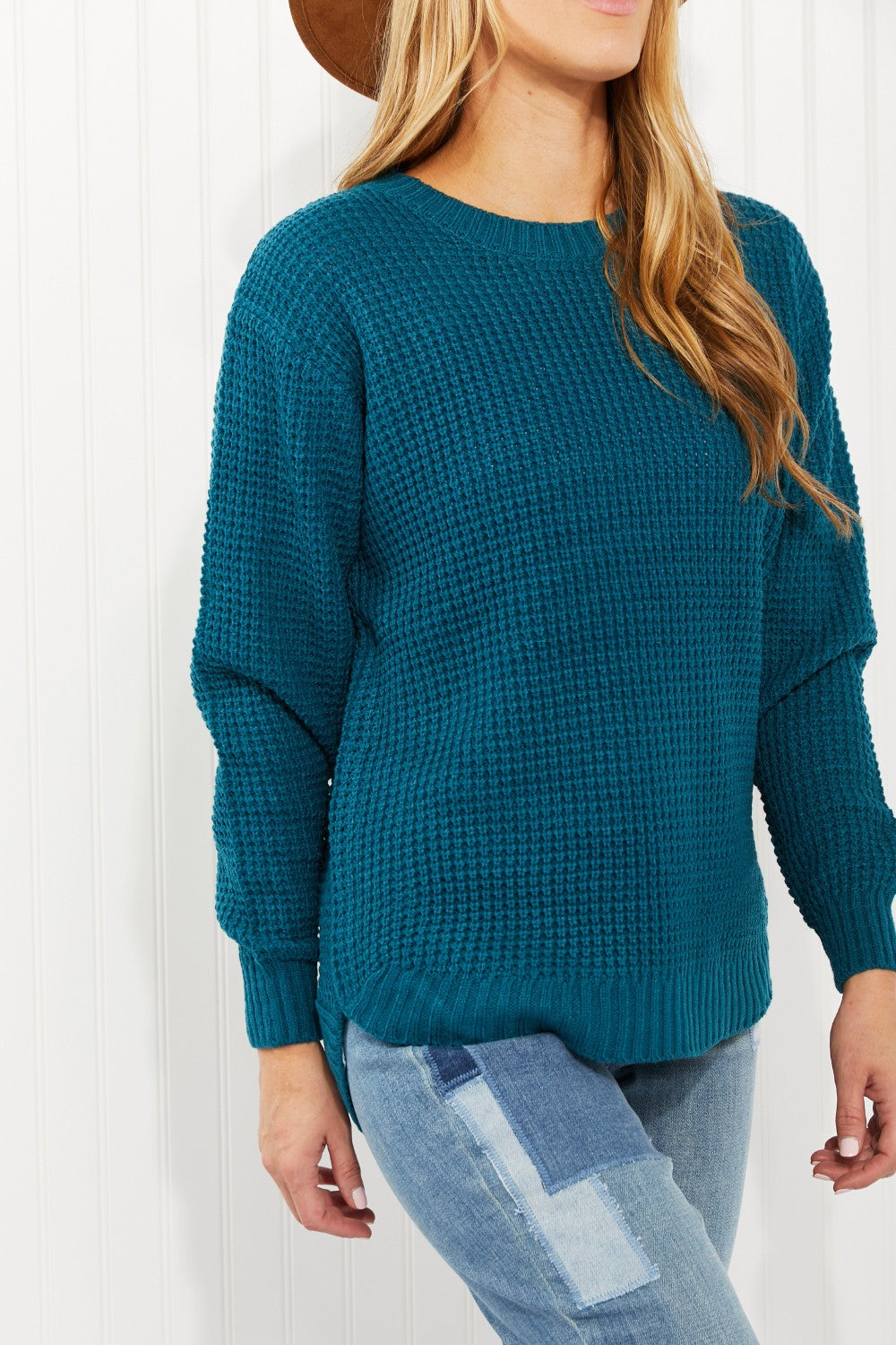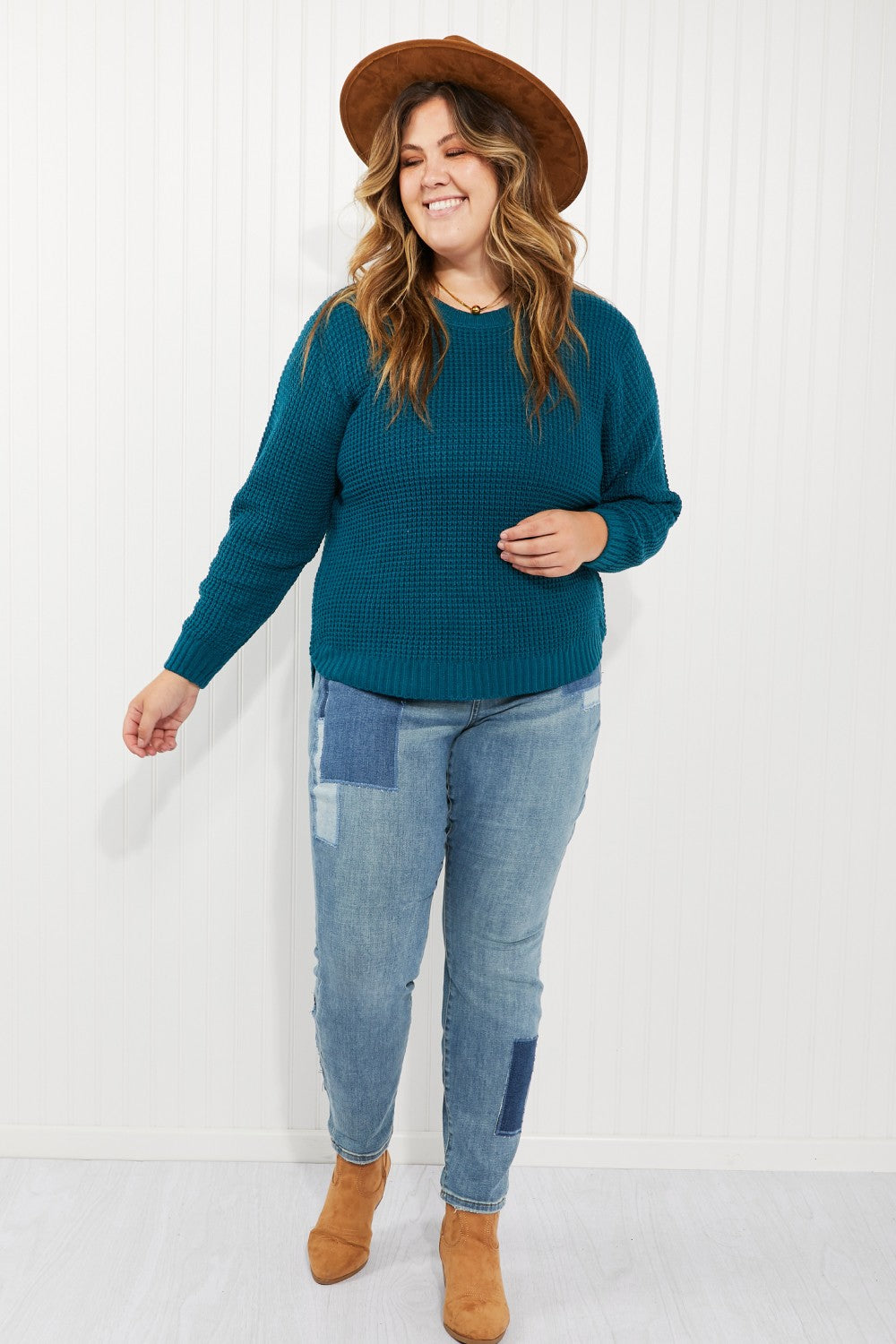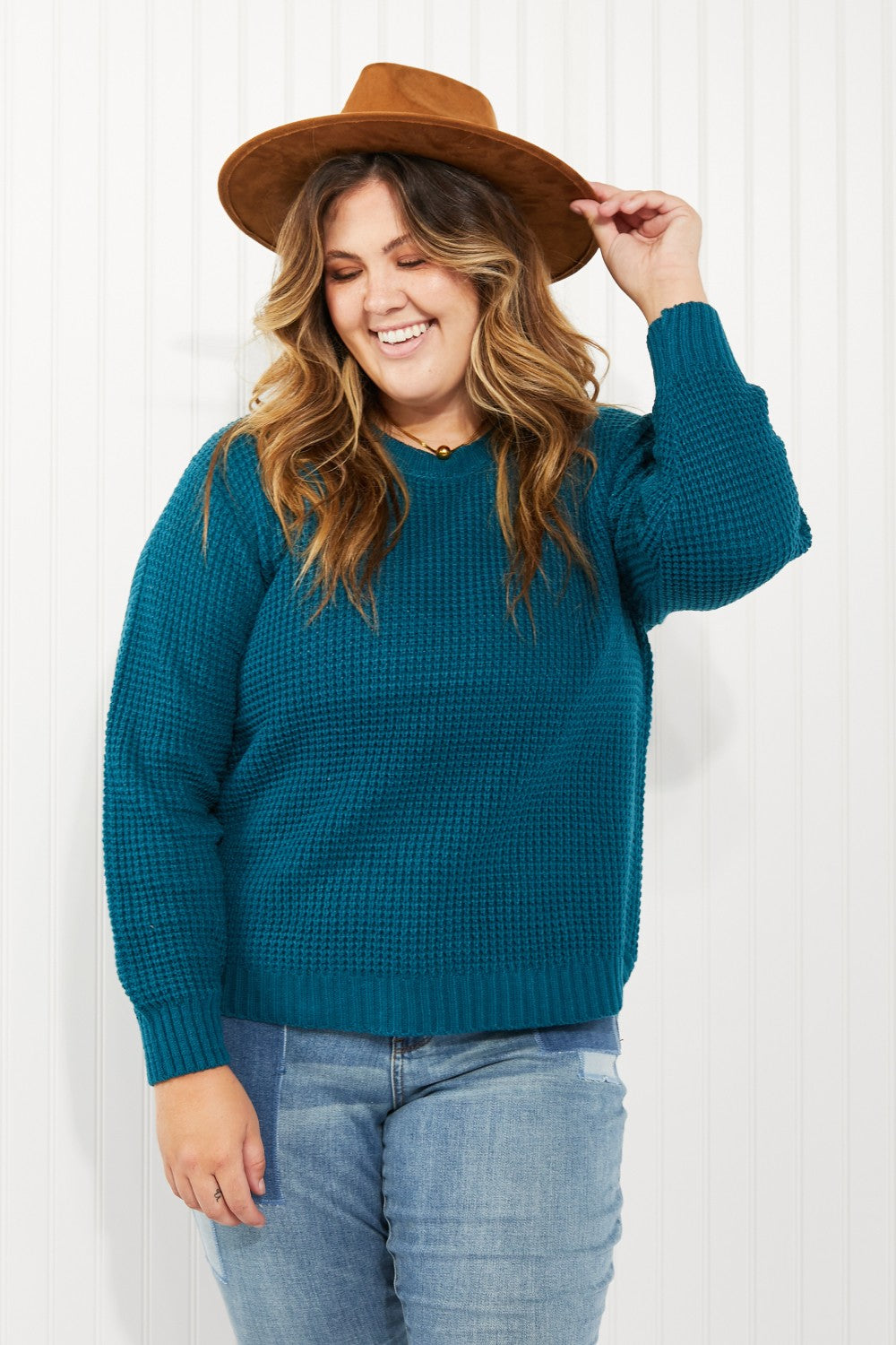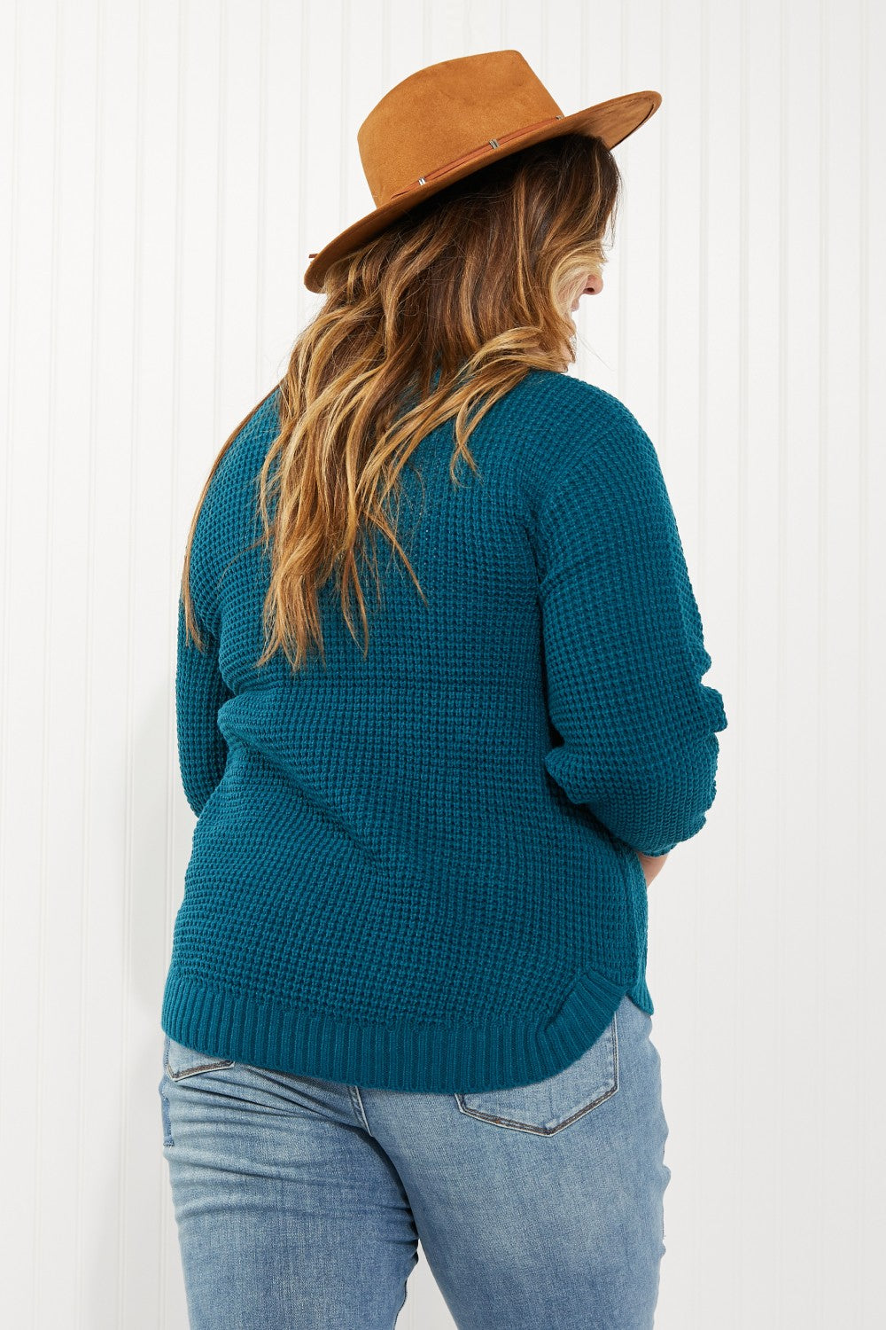 Zenana Autumn is Calling Full Size Waffle Knit Sweater in Teal