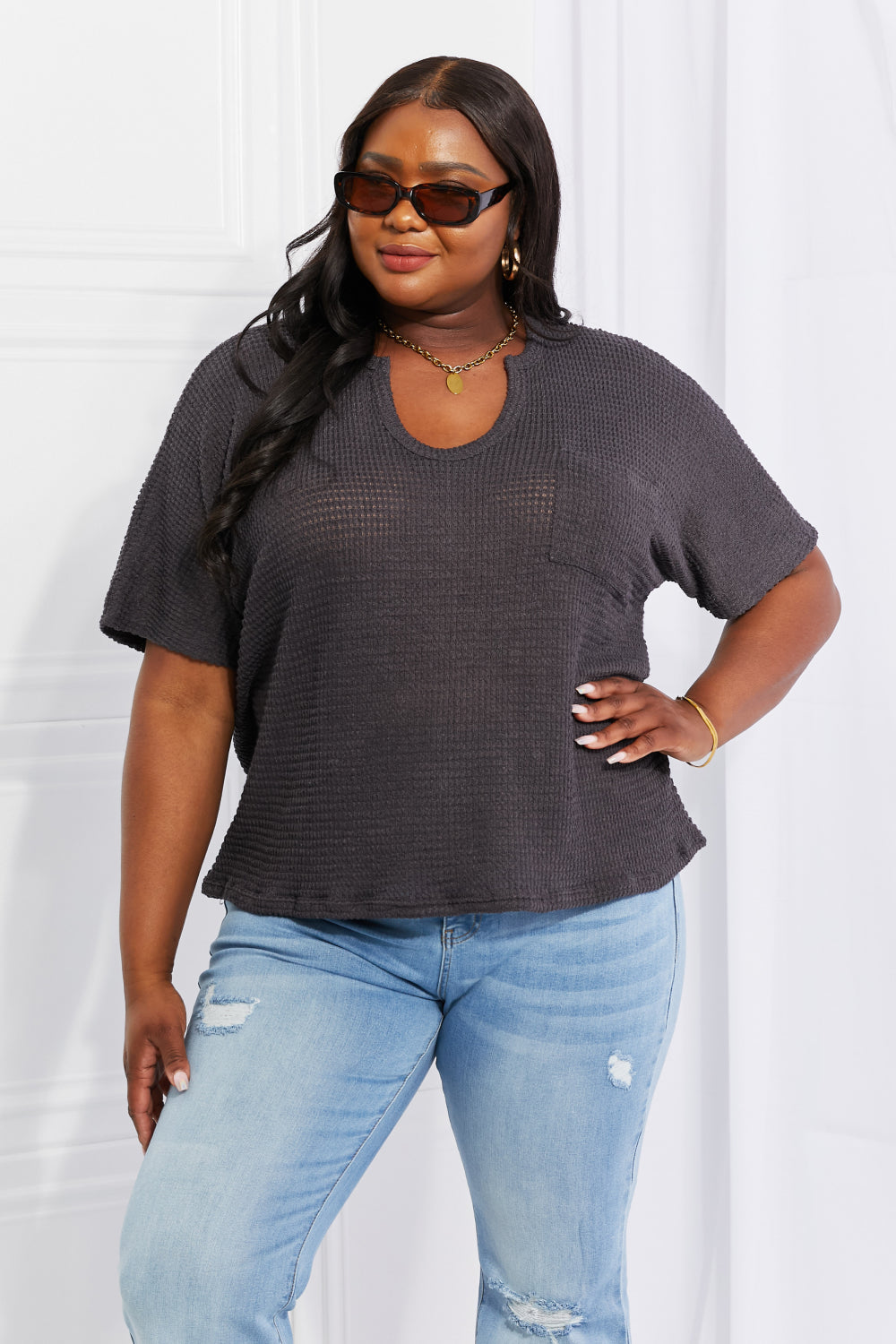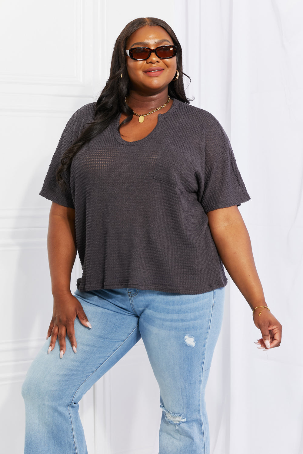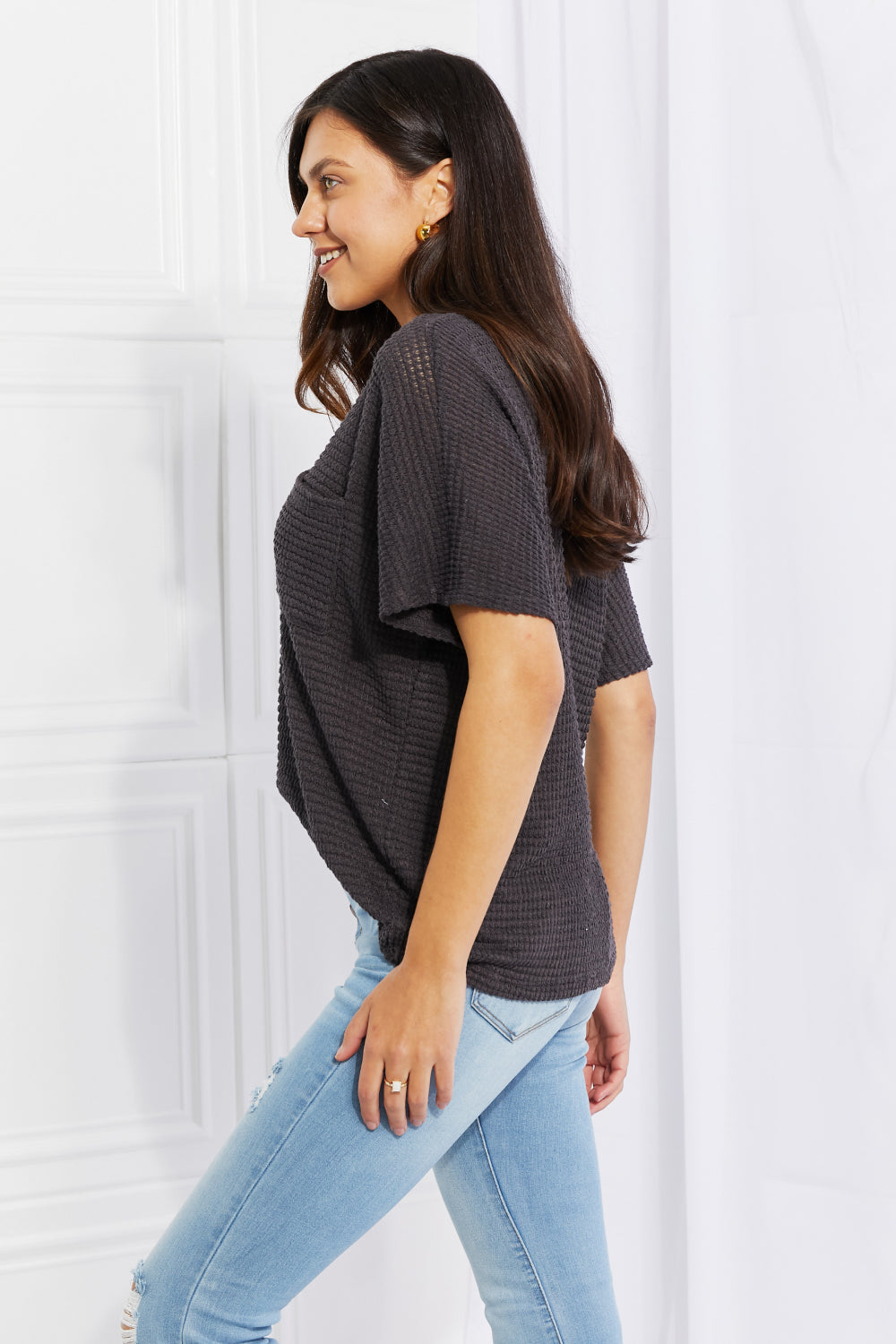 The unique neckline of this top is perfect for layering a statement necklace. A textured design gives your look an extra detail that will keep you coming back to this top over and over again.