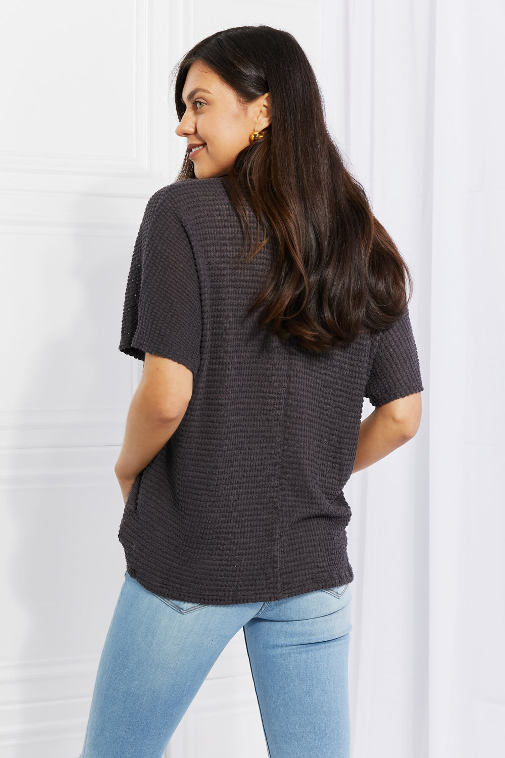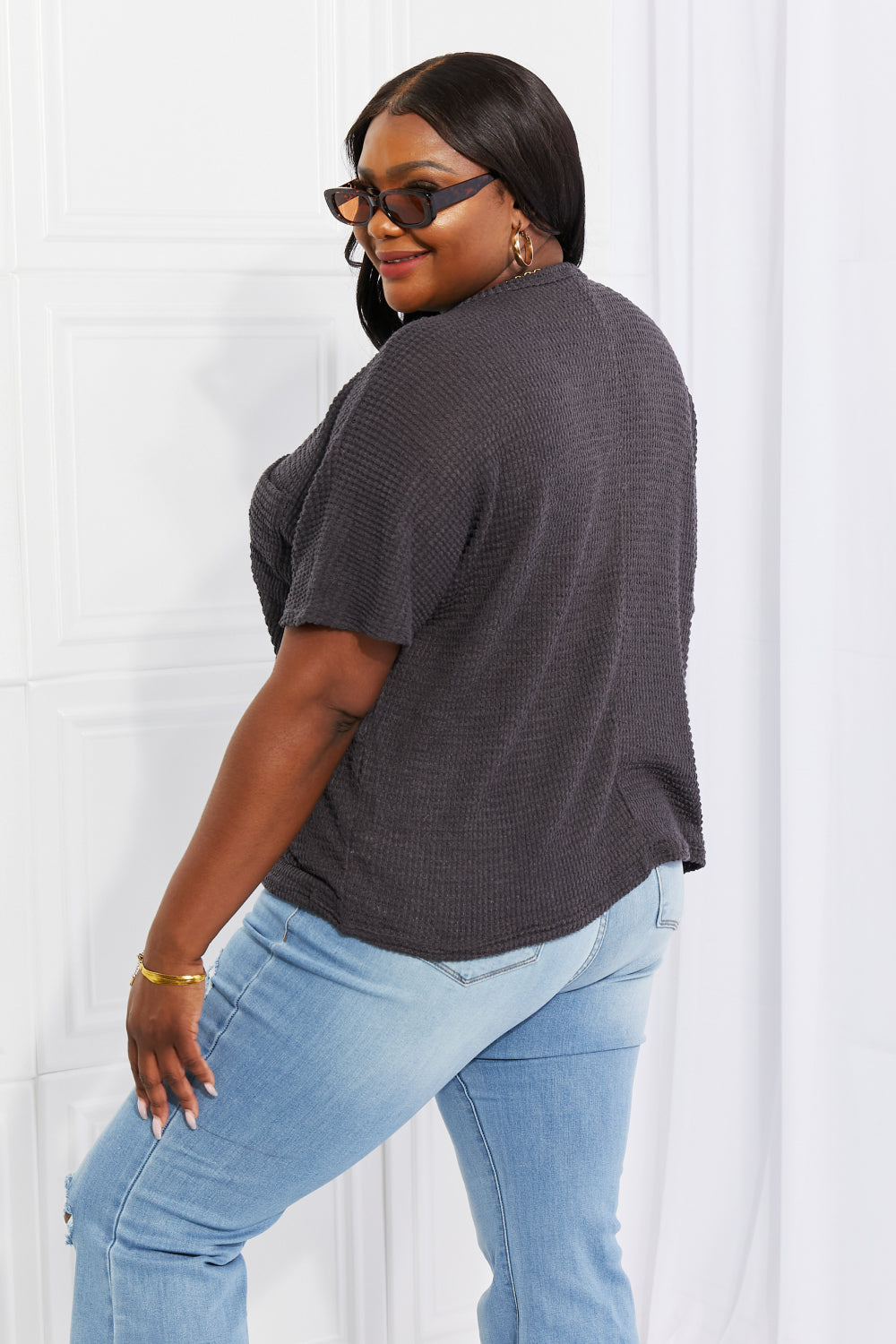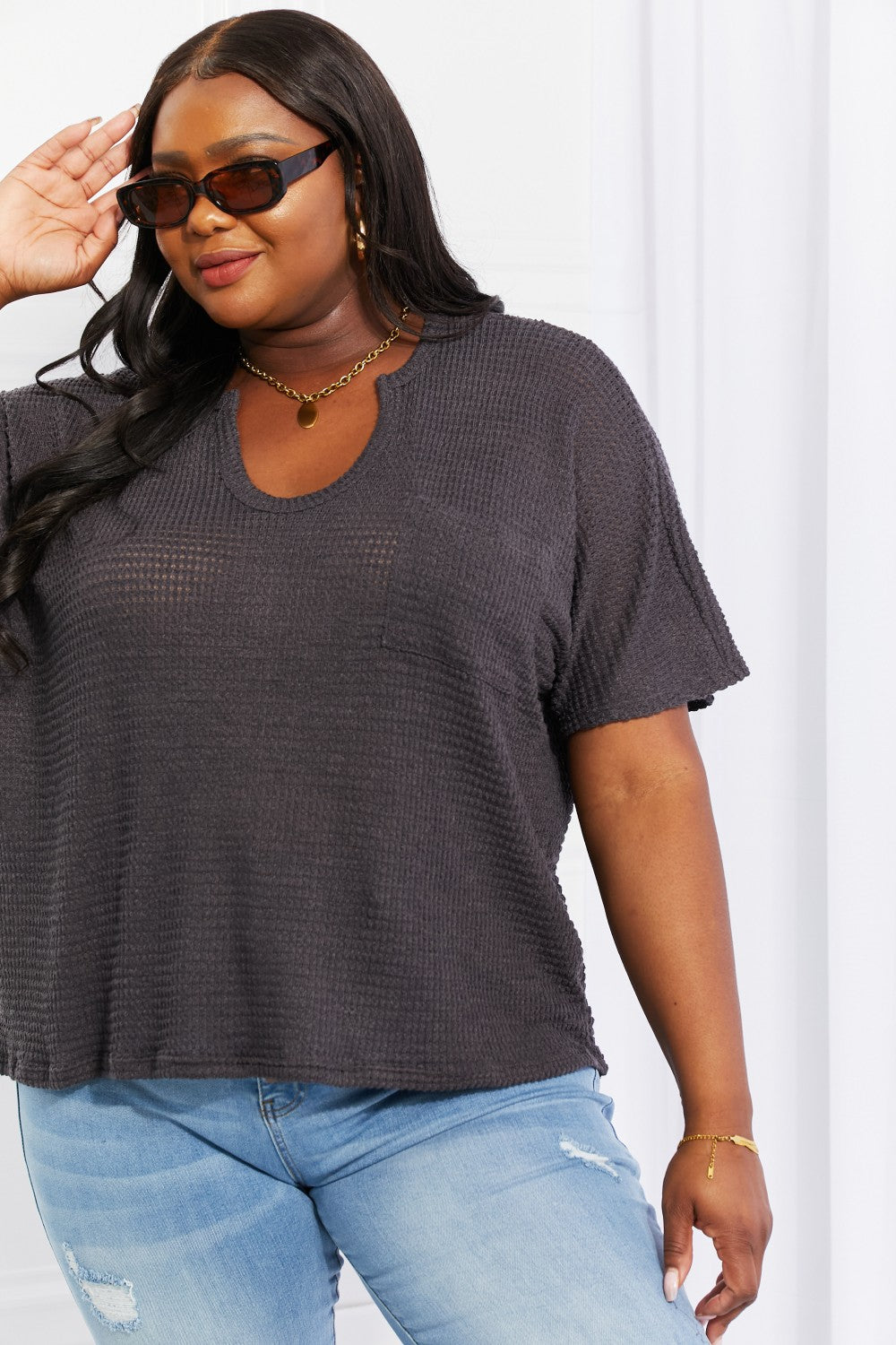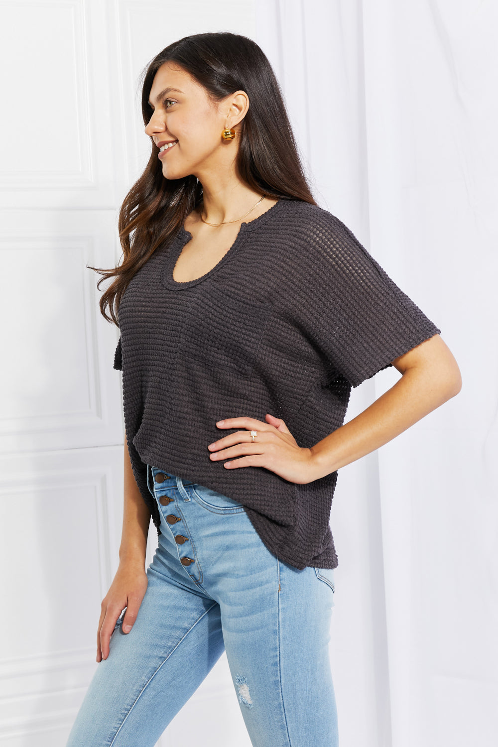 The unique neckline of this top is perfect for layering a statement necklace. A textured design gives your look an extra detail that will keep you coming back to this top over and over again.